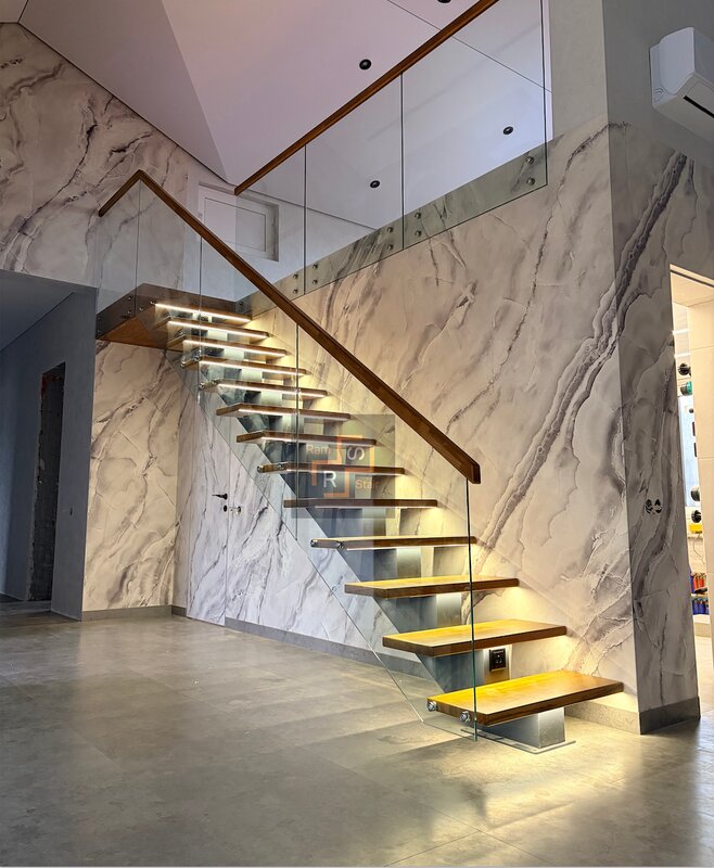 Самонесущее каленое стекло 12 мм на точечном креплении (с монтажом) для лестниц, балконов и террас