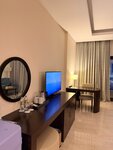 It's a great place. The hotel is on the shore, its own beach is only for those who live here. The sand, the water is calm, there are frequent tides in November 24 and therefore you can walk to the buoys). We haven't been by the pool, but there are plenty of sun beds there too. The service is good, cleaning and changing of towels daily. The room is spacious with good air conditioning, a kettle, a refrigerator and a safe. We live according to the HB system, so I will say that breakfast and dinner are decent, the choice is good, there is European, Arabic and Indian food. The hotel is alcohol-free, but there are two alcohol markets in the city itself, there is a choice for all types of drinks. The territory of the hotel is small, so we walk along the landscaped embankments to the right and left of the hotel.