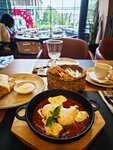 We came for breakfast Pros: 1. Average prices (Americano 25 thousand, shakshuka 65 thousand, pancakes with meat 75 thousand) 2. Aesthetically beautifully designed cafe design 3. Overall, the cuisine is not bad (it seemed to be predominantly European) Minuses: 1. Tasteless sour coffee 2. Lack of service, customer orientation 3. There was only one waiter in the hall, a boy of about 18, who was more of a runner than a waiter. He does not know how to communicate with guests from the word "absolutely". Neither the manager nor the administrator of the hall was there, which is very strange) I don't want to go back.