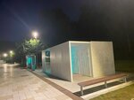 Стильный технологичный новый туалет. Внимание - это полностью белое небольшое здание-будка с очень тонко стилизованными обозначениями WC и пиктограммами человечков м и ж пола. Почему я об этом пишу - смешно, но сам наблюдал сценку, когда зарубежные туристы (по виду перуанки, да простят меня жители Перу), будучи, в ответ на их просьбу, направленны взмахом руки в направлении этого полезного заведения, почему-то приняли за него близрасположенную трансформаторную будку и стали ломиться во все её двери, не взирая на желтые предупреждающие треугольники с молниями. И смех, и грех. Получается, дизайнерские пиктограммы собственно туалета они не смогли разглядеть.