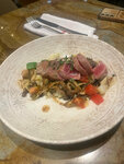 Теплый салат с говядиной заправлен очень интересным соусом, порция большая, можно заказывать как полноценное блюдо. Стейк из тунца отличный, к нему достаточно всякого гарнира, что тоже очень приятно. А вот том ям, на мой взгляд, не самый лучший, хотя и морепродуктов там достаточно. Брали еще какой то салат с булгуром, сытный, вкусный…. Вообщем все понравилось, но цены выше среднего…. P.s про цены стало понятно после того, как узнали, что это Новиков групп…а Новиков групп=качество….
