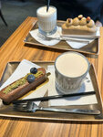 Плюсы: Атмосфера: Очень стильное и уютное место. Полное погружение в европейскую эстетику. Выпечка: Круассаны и эклеры выше всяких похвал. Свежие, слоеные, не приторно сладкие. Локация: Удобное расположение в центре, есть где присесть. Минусы: Цены: Все же довольно высокие. Для ежедневного визита не каждый может позволить. Очередь: В обеденное время и на выходных бывает много народу, сложно найти свободный столик. Вывод: Отличное место для особого случая или чтобы побаловать себя в выходной. Кофе качественный, десерты — объедение. Минус один звезду за демократичность в ценовой политике.