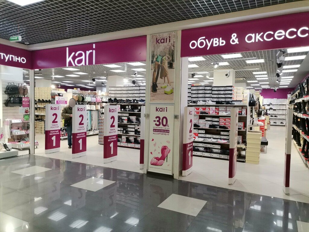 Хороший магазин обуви. Расположен в большом торговом центре около станции МЦД. В магазине всегда чисто и аккуратно. Раскладка обуви хорошая. Все коробки с обувью находятся в торговом зале, покупатель может померить нужную пару обуви, не обращаясь к консультантам. Ассортимент очень большой. Обувь продаётся разной ценовой категории от разных торговых марок. Мне очень нравится обувь именно от бренда Кари. В ней комфортно, обувь хорошо сидит на ноге, служит достаточно долго, подошва отличная, обувь, как правило, сделана из натуральной кожи. Рекомендую обувь от бренда Кари, мне она отлично подошла, ношу только её! Обувь других марок, которая продаётся в этом магазине, мне не понравилась: не удобная и/или прослужит недолго.