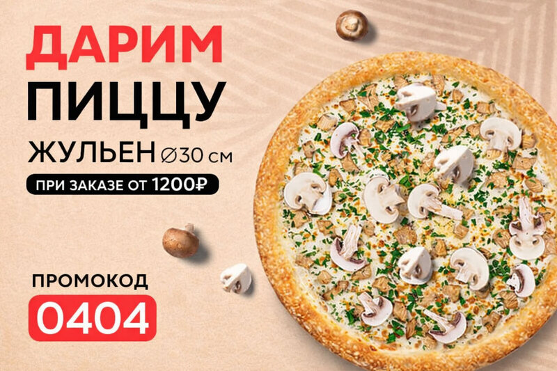 Вот продающее описание для этой акции 👇 --- 🔥 **Дарим пиццу «Жульен» Ø30 см!** Любишь, когда бонус — это реально вкусно? Тогда эта акци...