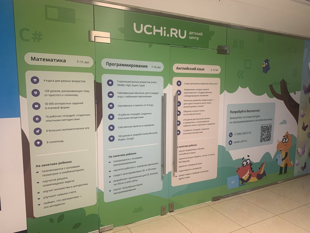 Отличная база для получения знаний. Местоположение удобное, само собой. Но, я хочу сказать о именно об Учи. Ру. Прекрасные педагоги. Интересная форма обучения. На базе есть детский лагерь дневного пребывания для детей на время каникул. Дочь ходит три года на программирование, закончили полный курс математики, первый год отходили на скетчинг. Планируем в следующем году пойти на английский. Уже посетили бесплатное занятие( на любой профиль обучения, кстати, есть бесплатные занятия, мастерклассы). В общем, что по контакту с ребенком, что по уровню знаний- лучшие на сегодня. Очень доволен ребенок, счастливы родители 😁. И вам рекомендую!