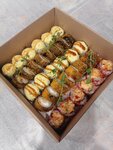 Тарталетки с креветками, курицей, снежным крабом и лососем