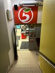 Скажем так: не самая плохая пятерка, но в есть ряд проблем, которые делают ее «корявой» по сравнению со более успешными сетевыми сотоварищами. Во-первых только один терминал самообслуживания, и тот поставлен для оплаты кофе(лайфхак: по нему можно и любые другие товары пробить). Во-вторых, всего две кассы(обычные) и во время покупательского «штиля» это не проблема, но стоит заглянуть поболе человеческих единиц, то начинаются волнения, сопровождаемые «можно кого-нибудь на вторую кассу», «Галя у нас отмена», «возьмите другой товар этот не пробивается». Возможно, я попал в столь неудачный вечерний час в это подземное продуктовое царство(магазин находится в подвальном помещении), и попал на полный аврал. В-третьих, некоторые ценники покинули свои исконные места, и отправились в дальнее плавание. В четвертых, ассортимент довольно скромный. Безусловно, вышеперечисленные явления по одиночке случается всюду, но тут как-то совпало разом. Из плюсов: сотрудники справляются и выдерживают нервозную обстановку. Есть лифт для тех кому тяжело спускаться по ступеням. Товары в надлежащем виде и просрочки не увидел. Есть рабочий кофемат и сиропы в наличии.