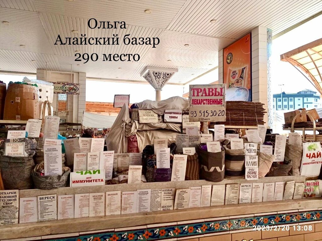 A huge selection of herbs. They can recommend what exactly you need to take. It is located right in the Alai bazaar itself. Herbalist Olga. I recommend