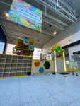 Отличная игровая площадка. Много разнообразных игрушек, 3-ех уровневый лабиринт с препятствиями и горками внутри, проводятся игры и танцы с детьми