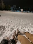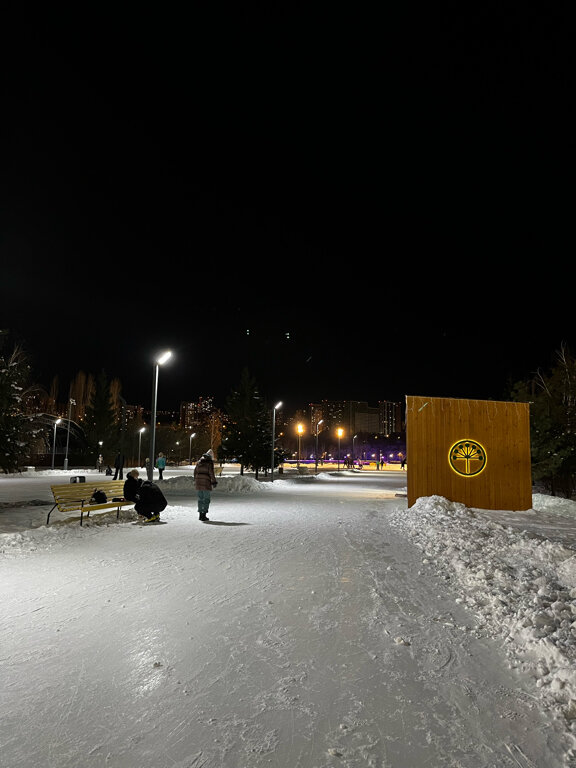 Каток довольно просторный, освещенный и бесплатный (при наличии своих коньков). До 22.00 работает прокат - не забудьте документ, иначе придётся оставлять залог или телефон. Хотелось бы, чтобы за льдом ухаживали пристальнее - калейность и бугры наледи не добавляют комфорта. Можно установить ящик для пожертвований на уход за льдом, я бы закинул пару сотен. В прежние года на катке играла музыка, в этом году решили без неё, видимо, тяжело сойтись во вкусах. Для начинающих есть пластиковые опоры-ходунки. Маловато скамеек.