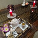 Наконец то дошли руки для оценки данного центра. К сожалению, мой отзыв отрицательный. Не понимаю откуда столько хвалебных отзывов.. Была на программе Преображение, 7500₽ за 3,5 часа , которая обещала тайский массаж тела и моделирующий массаж лица с использованием французской косметики.. В итоге вместо массажа тела я получила поглаживания кожи однообразными движениями (хотя просила посильнее помять, мастер услышала, но продолжила так же) , мастер не умеет делать массаж совсем, массажные линии не знает, что уж говорить о техниках.. с лицом, к моему огромному сожалению, такая же история, массажа никакого, только лёгкие поглаживания.. косметика.. обычная маска, ничем не лучше обычного крема, так ещё и воспаления появились через день. Ароматического сопровождения не было вовсе.. хотя бы аромасвечу бы зажгли..( Очень жаль потраченного времени и неоправданных ожиданий. Не советую. Хотя чай да, вкусный.