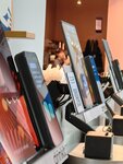 Кофейня уютная, симпатичная, мест много. Кассы понятные и простые в использовании. Перейдём к главному- к напиткам. Попробовали с подругой черничный, кажется, латте и латте имбирное печенье. Из хорошего: блестящая посыпка, которая остаётся на губах и руках. Миленько. Кофе - плохой. Просто плохой. Самый слабый кофе в моей жизни, будто из автомата. В жизньмарте и то лучше. И это, на секундочку, ~750 рублей, за два средних стакана. Чтоб ещё раз мы туда пошли. Не советую совершенно. Атмосфера не спасает ситуацию