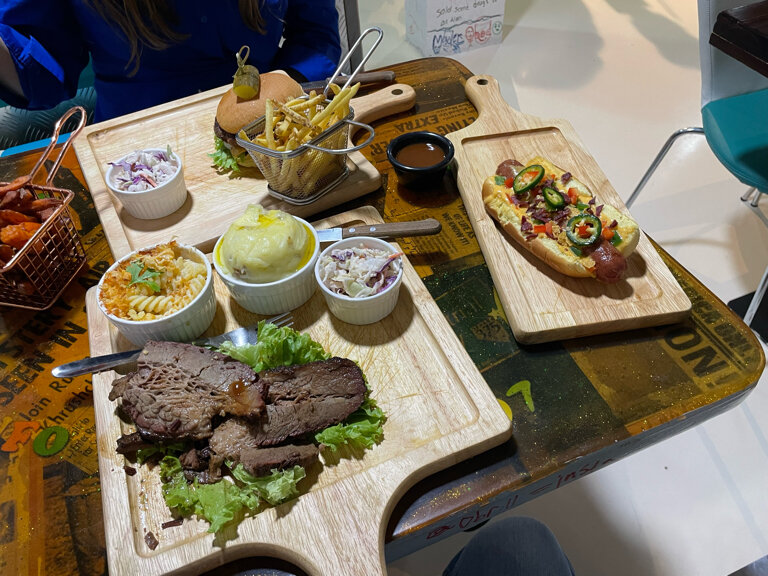 For lovers of high-quality American cuisine (fast food of a healthy person) Delicious juicy burgers, brisket (stewed beef), delicious lemonades and much more. We accidentally found this place and did not regret it, we had a tight lunch for two in the area of 150 dirhams (3000₽) but very tasty.