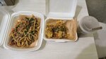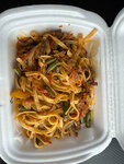Мякоть говядины, обжаренная с овощами, фасолью, пшеничной лапшой и соусом чили