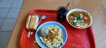 В центре города очень мало столовых, нашёл эту и не прогадал, вкусно и недорого. Суп наподобие лывжи, только с томатом, пюре с котлеты и хлеб 275р