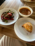 Okay, but it's too expensive for such an establishment and food. Half a noodle soup, half a vinaigrette, mashed potatoes, two small meatballs, compote cost 104,000. At the same time, the food is good, but generally ordinary, without frills. And it seems that this should cost well 50-70k, but not 100+. In short, sometimes you can go in if you are too lazy to look for something else. Or you need to eat quickly, because there is no need to wait, everything is ready. Or if you want to look at the food before ordering. Or you need to take something home with you. Or you need a working Wi-Fi. But for example, in the same cafe near the train station, "Sat down to eat" would cost twice as much. With about the same quality of food. But of course the interior is a little weaker there (although the chairs and tables are very similar), and the waiters here are of course very efficient. There are no waiters there at all. Just like Wi-Fi. I've been here several times and each time I was unpleasantly surprised by the final receipt.