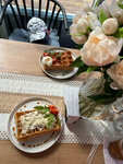 Уютное кафе! Случайно обнаружила, и стало интересно от одного названия «кофе и ВАФЛИ»:) По меню/бар, есть достаточно много позиций, можно найти как завтрак/обед, так и ужин! Помимо вафель и круассан, есть салаты, супы, паста! Решила устроить дегустационный день! И заказала на пробу сразу много позиций: – Вафля с курицей, грибами и сливками – Вафля «Цезарь с лососем» – Вафля «Сникерс» – Вафля с грушей в карамели с бананом и сыром творожным – Круассан с беконом и яйцом – Круассан «Яблочный штрудель и мороженое» Всё понравилось, всё вкусно, и очень сытно, одной вафли с начинкой хватит на полноценный приём — абсолютно! Больше всего понравилась вафля с курицей, грибами и сливками! Вафля «Цезарь с лососем» вкусная, только там майонез в соусе, а я против него:) По бару, есть чай/кофе, коктейли и смузи! По ценам, ₽₽-₽₽₽. Вафли от 420₽ до 630₽ Круассаны от 320₽ до 470₽ Дружелюбное обслуживание! Симпатичный и уютный интерьер, красивые картины! Хороший и чистый туалет! Есть программа лояльности, кэшбек за покупку в виде ₽! Рядом с двух сторон есть парковка!