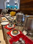 The room is bigger and spacious. Cleaning every day, towels are changed. What I liked is that all issues are resolved very quickly, the staff tries their best. I really liked the hotel. Jasmine liked the beach the most, the delicate sand, near the shore there is a part of a flooded ship where a lot of fish swim. This is a rarity in Hurghada. Aladdin has a beach with rocks. You can always find a place on the beach. There is a bar on the beach and by the pool. There is a restaurant on the beach where you can have a full meal, there are shawarma and burgers. The food is excellent, varied, fish, several types of meat, liver, pizza, barbecue different every day, 2 times a week seafood (shrimp, crabs, squid). There are a lot of pastries, delicious. Peanut halva. Everyone will find something to their liking. The food is delicious, there is something to feed the child. The disadvantage is that tea and coffee only in the morning, for lunch and dinner cola, juice diluted with water. There are cut fruits, melons, guava, dates. Delicious coffee is available in the lobby bar. You can sign up for an Ala carte restaurant-Italian, Mongolian, Oriental. We signed up for Mongolian, Aladdin liked the dish, it is served in a frying pan. The territory is large, 3 hotels, everything is green, well-groomed, there is a place to walk. There are several pools, there is a heated water park at the Ali Baba hotel. The animation is great