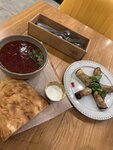 Шикарно поела!!!!! 💗💗💗💗💗💗 Борщ был безумно вкусный, с ним вместе подали сметанку и теплый (!) хлебушек 🥰👌 это было так приятно))))) Рулетики из баклажан с гречким орехом - изумительны🔥 Официант- приятный молодой человек, оперативно обслужил))) Жаль только, что в этот вечер у них был ажиотаж (было много заказов на доставку) и я не отведала свой любимый хачапури по-аджарски 🥳 будет повод вернуться)))) Атмосфера в ресторане уютная, дизайн потрясающий) видно, что уделяют внимание деталям) не только только в интерьере, но и в кухне 💖🤩