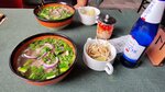Говяжий бульон на костях, говядина, рисовая лапша, зелень, ростки маша. Подается с чили соусом и чесночным соусом Зам Той
