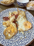 Завтракали сегодня здесь в двоем , принесли в отвратительном виде , как можно еду так подавать, блины сильно сладкие как и каша манная, яичница в масле утонуло просто , пока убирала масло салфетками уже аппетит пропал ,от такого количества сахара и масло на утро желудок ныл бы весь день
