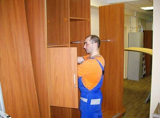 Перемещение мебели в помещении выполняется на весу на специальных ремнях. Если мебельная конструкция не проходит в дверном проеме, мы выполняем её частичную разборку и дальнейшую сборку.