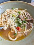 Чистое свежее заведение типа ресторана, приятная музыка Мы заходили на обед, зал почти пустой Из салатов пробовали: греческий и с моцареллой, томатами. В целом, оптимально, может чуть дороговато для такой порции Супчики пити и чузма-лагман очень наваристые, жирненькие, в самый раз для зимы Из горячего ещё пробовали треску с брокколи и креветками, взяли в дополнении гарнир из картошки по-деревенски, получилась огромная порция, стоило 20-минутного ожидания. Очень сочно, сытно и вкусно, рекомендую! Выбор алко напитков ограничен, заценили шпатен и ловенбрау Обслуживание хорошее, только официанту нужно немного расслабиться, у него все получается)