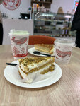 Кофе понравился, фисташковый напиток на вкус как фисташковое мороженое:) чувствуется качественная ореховая паста. Фильтр порадовал как минимум тем, что не закончился к нашему приходу)) заварен хорошо, вкус отличный, чувствуется классное зерно Десерт было из чего выбрать, витрина не пустовала. Взяли тыквенный торт (кайфовый, мягкий, влажный, но внутри попался кусочек замороженного крема:( понятно, что десерты все из заморозки, но зуб такого прикола не оценил) и миндальный пирог (для своей стоимости он просто прекрасен:) Уютная составляющая хромает, но тут ничего не поделать, если пришел на островок в тц…но всем причастным уважение за дизайн - сохранить айдентику и атмосферу на нескольких квадратных метрах проходного тц задача непростая В целом, отличная кофейня, хочется пожелать только развития и найти свое уютное помещение, чтобы хотелось возвращаться как можно чаще🫶