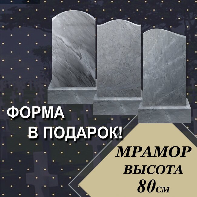 Мрамор 100*45*7 см из месторождения г. Верхний Уфалей. Вы можете выбрать другой размер с соответственным изменением цены. В стоимость входит подставка и цветник (гробничка). Все необходимые для установки отверстия просверлены.