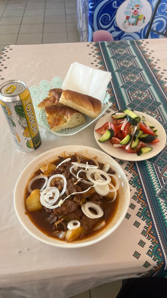 Good day to all! I stopped at a cafe to eat on the way from Kyrgyzstan to Russia. The choice of dishes is not great (all meat) but very tasty! I tried their signature beef with onions in a frying pan. I really liked it, I advise you to try it.