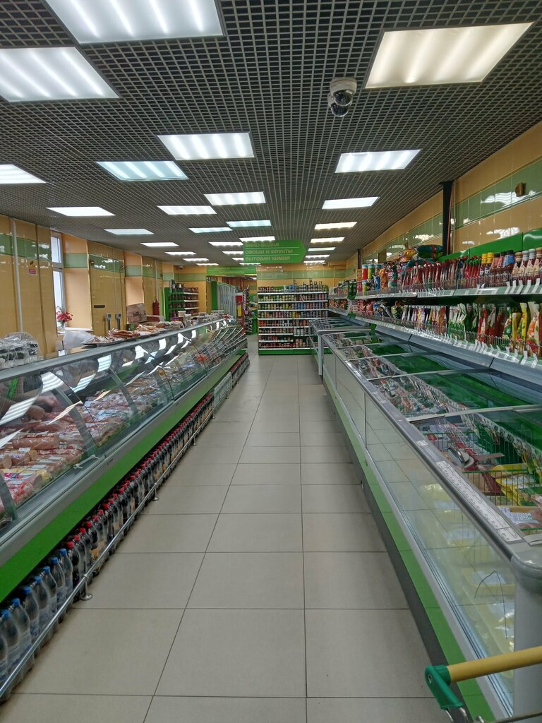 Ассортимент неплохой, но всё дороже, чем в других супермаркетах. Акций со скидками на товар не бывает никогда. Если товар уценен, то срок его годности не подходит к концу, а однозначно истёк. С ценниками зачастую неразбериха: на кассе товар обойдётся дороже, чем написано на ценнике. Зато круглосуточно и рядом с домом.