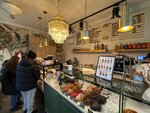 Локальная кофейня, работающая скорее навынос, что тоже имеет право на существование - забежать за стаканчиком кофе по дороге на работу Небольшое количество мест - вдоль окон за барной стойкой, с близким соседством друг к другу, с барными стульями без спинок. Сидеть в помещении скорее некомфортно, в т.ч. от самого размера помещения и проходной зоны впритык к посадочным местам Цены, как и в основном филиале у каменного моста, средние по Калуге. Десерты - как всегда - потрясающие. Пышные круассаны, булочки и др. В помещении не предусмотрен туалет для посетителей и отсутствует кухня, о чем хотелось бы прочитать в соц.сетях перед посещением Кофе варят неплохо, выбор большой, в основном - на молоке
