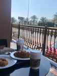 I felt like a European person at Starbucks. Our man is understood, you can speak on your fingers. There are tables outside, but there's a road nearby, and I was sitting inside with air conditioning and no outside noise. I took a delicious coffee with cheesecake for 47 dirhams, the price is by local standards. I bought all sorts of things with me (coffee, a glass for water, a non-GMO waffle, a bag of Italian coffee for a mug) for 76 dirhams, see photo.