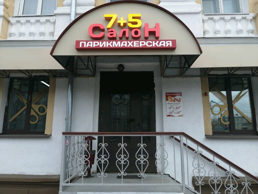 Парикмахерская находится в хорошем месте , после покупки квартиры в 2016 году стал вопрос куда ходить стричь волосы И так далее . Пробно зашла в 7+5 на Московском проспекте 61а. Так и хожу к одному мастеру Екатерине Сокова . Здесь стригут всех и маленьких детей тоже . Атмосфера здесь по дизайну желает лучшего, но все очень чисто и просто . Всегда девочки предложат чай. Самое главное качество работ и приятный ценник! Спасибо коллективу .