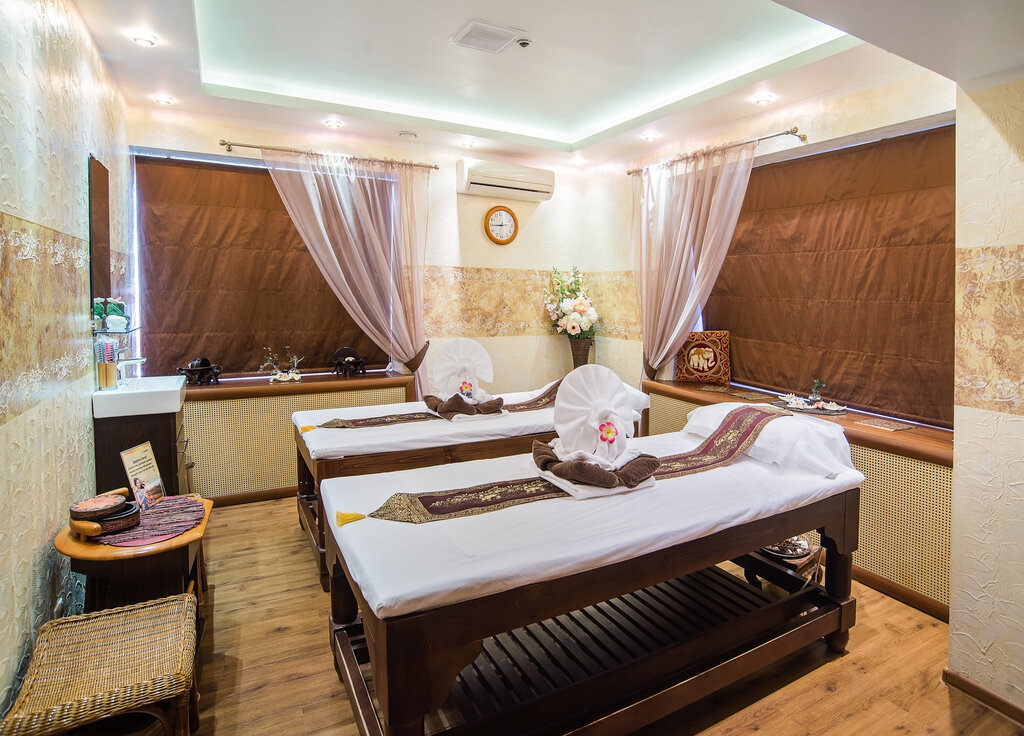 Был тут на днях с своей девушкой, решили попробовать парный тайский массаж. Честно говоря не ожидал, что так зайдёт! Сначала немного стеснялся, но потом даже отрубился от расслабона😁 Интерьер приятный такой, всё в тёплых тонах и запахи тоже экзотические, сразу как бы настраиваешься на релакс. Девушка моя в восторге, теперь ее от вас не вытащишь. Следующий раз на силовой пойду💪