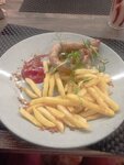 We arrived in Kobrin with the children, we decided to stop at a cafe to eat first. At the entrance, I was immediately perplexed by the sign "Bar", going in again and the reviews section on the maps made sure that it was still a cafe too. It's nice and clean inside. On food: I'm not a foodie, but it's impossible to say that it's just "wow". The usual food. We used pasta sauce to taste... Well, there is no such feeling; Sausages from the chef with French fries are a very strange combination - sausages and French fries. The sausages themselves are lightly fried, you can say more stewed, and since now the meat is not as high-quality as before, it would be possible to season it more. In general, I was not impressed with the food. The price tag is average.