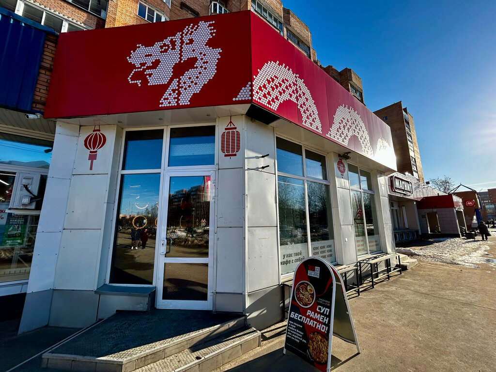 Очень приличное, чистое место с демократичными ценами и вкусной едой. Симпатичный интерьер, интересное решение с плиткой на столах. Брали сет с собой, везли в село в 5 остановках на электричке от Дубны и ели уже на следующее утро — роллы даже после этого выглядели и на вкус были свежайшие, значит, готовят из качественных продуктов. Максимально довольна. Единственное, хотелось бы доставку до наших мест, но это что-то из разряда фантастики хд