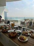 We had a rest with friends, rented a penthouse of 500 squares on the 50th floor) a spacious kitchen / living room, the same type of small 4 bedrooms. In addition to the toilets in each bedroom, which were behind a glass wall, there were 2 separate toilets, which is important)) The balcony was huge) there are sun beds, and a small pool, and a sofa with a table, and a dining table) at which, by the way, we had dinner a couple of times, ordering a private grill party) they rolled us a buffet and grilled shrimp, meat and fish to order) we liked it) especially seafood) from the general menu, I don't like food I especially went in) the shawarma was straight as oriental as possible, fat, the meat is not in the form in which it is cooked here. Dolma was very sour. The guys didn't really like Shakshuka either) well, as they say, the taste and color) but I really liked the royal shrimp)) Not everyone thought about taking a tanning product, we found a spray shop in the spa area. So don't repeat our mistakes)) the margin is doubled)) and the can for 2t cost 4t) The location is not particularly convenient) we drove 35-40 minutes to the beach at Fairmont) to the Dubai Mall about the same time to go) What I didn't like was the lack of privacy on the balcony, where we actually hung out most of the time. You can look over the railing from your balcony to see what the neighbors from below are doing, and your neighbors from above can also come to stare at you whenever they want. So one evening we were annoyed by the Indians who arrived at night and looked out to us every 5 minutes. In the photo, you can see the railings of the neighbors' balconies from above. This is an ingenious decision of the designer👍