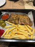 Интерьер приятный, ребра хорошо приготовлены, но картошка фри ужасна. Да и обслуживание просто катастрофа. Официанты неприветливые, никакой заинтересованности в происходящем. Я пришла позже друзей, заказала ребра и пиво. Им принесли из напитки, а мне - ребра. Пиво не принесли, пришлось напоминать. Счет просили три раза. Не уверена, что захочу еще раз зайти.