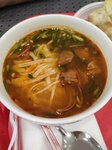 Мне сложно судить это заведение, так как многие отзывы ниже были написаны и год и два назад. Многие пишут о том, что заведение сильно испортилось, еда никуда не годится и то и дело в супе плавает таракан. Что ж, не знаю, кто эти "везунчики" из отзывов ниже, но лично мне в тарелке не попался ни таракан, ни прочая насекомообразная живность. Для начала давайте скажем, что это всего лишь забегаловка в торговом центре с претензией на вьетнамскую кухню. Это не какой-нибудь узко профильный ресторан с супер-крутыми шеф поварами прямиком из Вьетнама. Не будем питать иллюзий. Так же скажу, что действительно достойный фо бо, к примеру, крайне сложно найти в нашей с вами столице. Итак, теперь о самой еде. Повторюсь, мне повезло и никакой лишней живности в моей тарелке не оказалось. Да, мяса тиграм не докладывают, мяса много не бывает, но его было достаточно. Подача для ресторана быстрого питания очень даже приемлемая, еда ВКУСНАЯ. Да, всегда можно было лучше, что-то было пресновато, что-то напротив, перебор со специями. О вопиющих минусах: листья салата были вялыми и горчили, хотя может быть это было всего лишь украшение? 😅😂 В общем и целом еда была вкусной. Цена/качество ВПОЛНЕ ДОСТОЙНОЕ. Это всего лишь попытка воссоздать вьетнамскую кухню в быстрых условиях перекуса, а хорошая это попытка, или нет - решать вам =) Моё мнение: Пообедать вполне себе можно, но если хотите попробовать более аутентичную вьетнамскую кухню, придётся поискать место посерьезней. И да, очень милые стаканчики с бабл ти, кошачьи ушки просто очаровательны. Или чьи это ушки? Красной панды? =) Черничный ну очень вкусный!