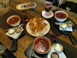 An atmospheric place! There are all sorts of interesting things in the interior. Borscht is very impressive visually, but not very tasty - there is little richness. Shish kebab is delicious 👍 mushroom soup with pearl barley is just a fire
