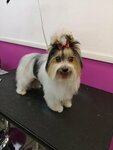 Порода бишон-фризе. Салон на Таганке. Мастер Олеся Чернышова - единственный мастер, который умеет стричь бишонов. Собака была подстрижена красиво и по форме. Остальным мастерам в этом салоне - Анне Косатенко и Наталье Анохиной лучше не браться за стрижку этой породы. В обеих случаях собака была подстрижена просто безобразно! Зачем браться за породу, стрижке которой не учились!? За 3000 руб. я получила просто чудовище 🤦‍♀️ Очень жаль, что салон экономит на администраторе, который должен сидеть и контролировать качество предоставляемых услуг, а так же интересоваться мнением клиента.