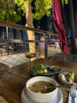 A DJ plays in the evening, it's very atmospheric. They quickly accept the order and bring it. Everything was delicious. Rice with eel, roti tortillas, rolls. There is a Russian-speaking staff. A convenient choice of dishes, if you do not want to delve into the translation in the menu. According to the qr code, it is transferred to the "with pictures" menu. The pictures correspond to reality. You can't watch the drone show from this point. The trees are in the way.