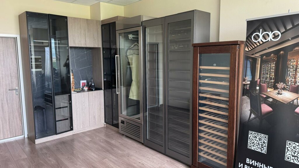 Это офис компании, тут нет шоурума, чтобы выбрать и купить винный шкаф. Делают только под заказ :( Показали образцы и материалы отделки.  Жаль, что не продают шкафы по наличию, очень красивые модели у них. Приятный и вежливый персонал, подробно проконсультировали на счёт винных шкафов.