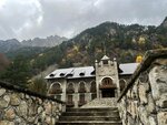 Очень красивое атмосферное место, здание отеля похожее на замок, номера новенькие и чистые, новая качественная сантехника, белье, халаты-все на высшем уровне. Очень приветливый и доброжелательный персонал. Рядом речка, завораживающая своим гулом и красотой. Можно пешком дойти до канатки и подняться до водопада в заповеднике. Красивейшее окружение гор и леса, утром не насмотреться и не надышаться:)) Вкуснейшие завтраки -шведский стол, ужины тоже хороши. Вообщем, приятно удивлены и жалеем, что заехали только на один день, остались очень довольны!