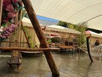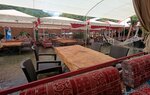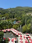An unusual restaurant located on the catwalks above the Dim River. A large and diverse territory. You can sit at a table standing in the water. There are sun beds and water activities. The water is very cold. Beautiful view of the shores and dam of the reservoir.