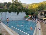 This is not just a cafe on the river, but a whole complex. There are slides from which you slide into the icy water of the river, and there is also a tower. This is what many cafes on Dimchai have. The water is really icy, not everyone will come in, our kids didn't go on these slides. And there is a separate pool with slides and warm water. That's where our kids spent the whole day. Nearby there is a swimming pool and slides for the very little ones. There are sun beds and a two-level area with tables near this pool. Where you can sit, lie down, have a delicious meal. After reading the reviews, I didn't expect the food to be so delicious, and besides, it arrived very quickly. Everything costs more, but there is no entrance fee. And the territory is very large, well-groomed, comfortable. Very huge. There are many different areas, tents on the river, hammocks, swings and tables right in the river. There is a closed cafe with a library. There are bars. There are also picturesque photo zones: arches, waterfalls, armchairs, sofas and many other beauties. They feed you everywhere. There is a parking lot. There are a lot of people, we were on Friday, I think it will be crowded on the weekend. If you do not have your own transport, you can get from otogara Juma Pazara by bus 10, it runs every hour at the beginning of the hour. It takes about an hour to get there, more or less, depending on traffic jams. And also back, I don't know when the last one is, but there are definitely 20:00 and 21:00. You can pay with a bank card.