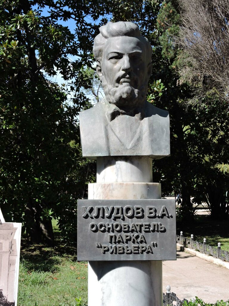 Памятник- бюст Хлудову Василию Алексеевичу был открыт 1 апреля 2004 года в парке «Ривьера» города Сочи. Авторами работы являются сочинские скульпторы Евгения Пешкова и Александр Тихомиров. Памятник установлен благодарными потомками коммерсанта, который основал шикарный парк с редкими субтропическими растениями Отличное место для семейного отдыха. Территория чистая, ухоженнная.