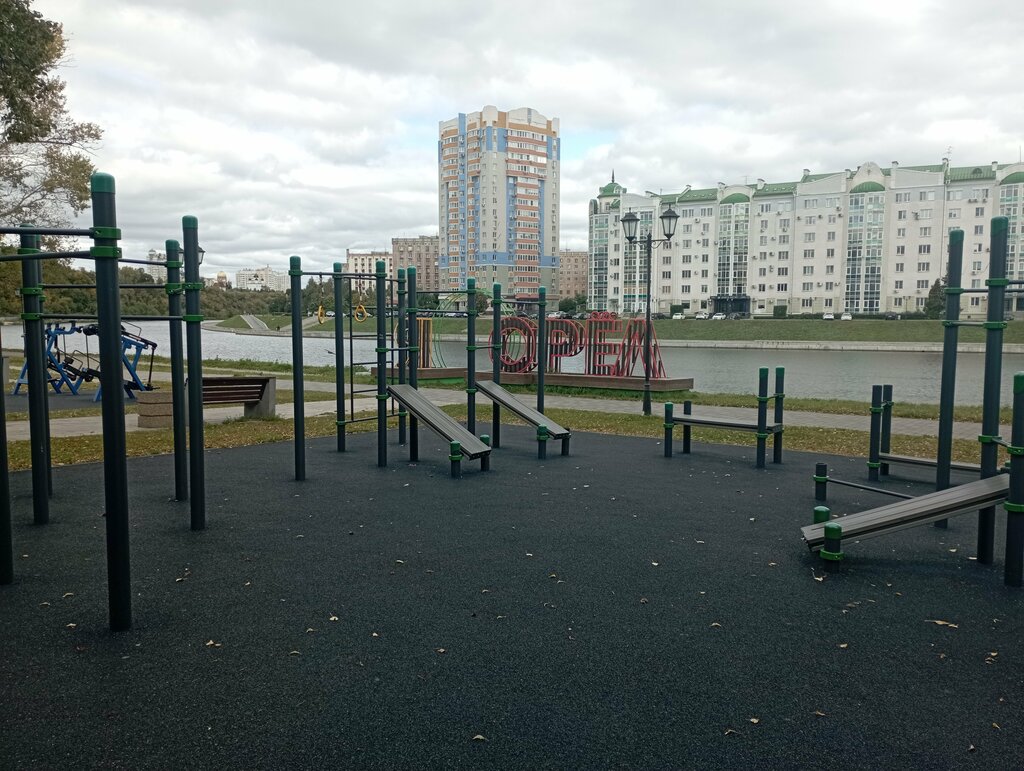 Очень хорошее место. Есть ВСЁ на все группы мышц + несколько комплектов гантелей на привязи + турники/лавки.