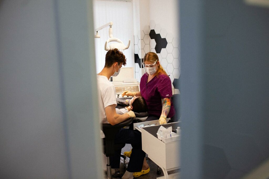 Dentist services:orthopedics, microscopic treatment, repair of dentures, skyces, treatment of periodontitis, restoration of teeth, treatment of tooth cysts, gnathology, bone grafting, root canal treatment, filling, treatment of gum disease, teeth whitening, crowns, frenuloplasty, braces, therapy, oral hygiene, orthodontics, prosthetics, caries treatment, implantology, endodontics, temporomandibular joint treatment, extractions, aesthetic dentistry, surgery
